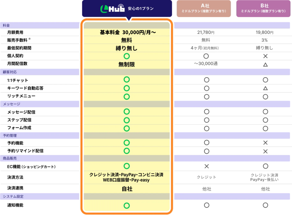 | LHubの導入には何が必要ですか? LHubをご利用いただくには、LINE公式アカウントが必要です。まだお持ちでない場合も、簡単に開設できますのでご安心ください。開設方法も丁寧にサポートいたします。 |
