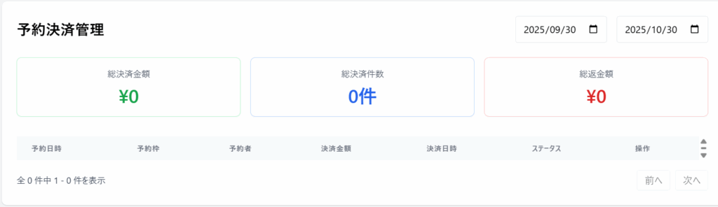 予約決済に対応する予約フォームの予約枠名が表示されます。 - 予約者