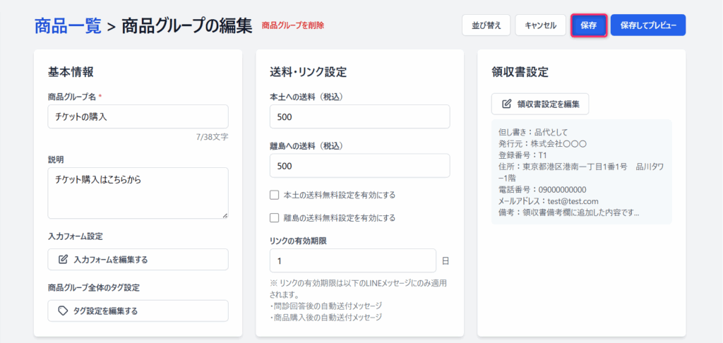 商品グループを新規作成します。詳細な手順は「商品グループを追加する」を参照してください。