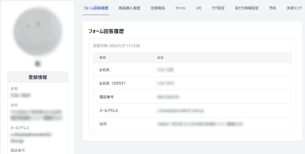 これまでに回答したフォームの履歴が表示されます。 - 商品購入履歴